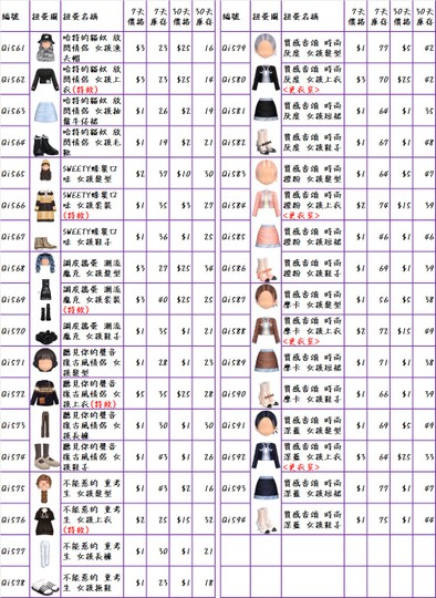 ★★需要請私訊或留言正確名稱(包含男生或女生的)及數量★★