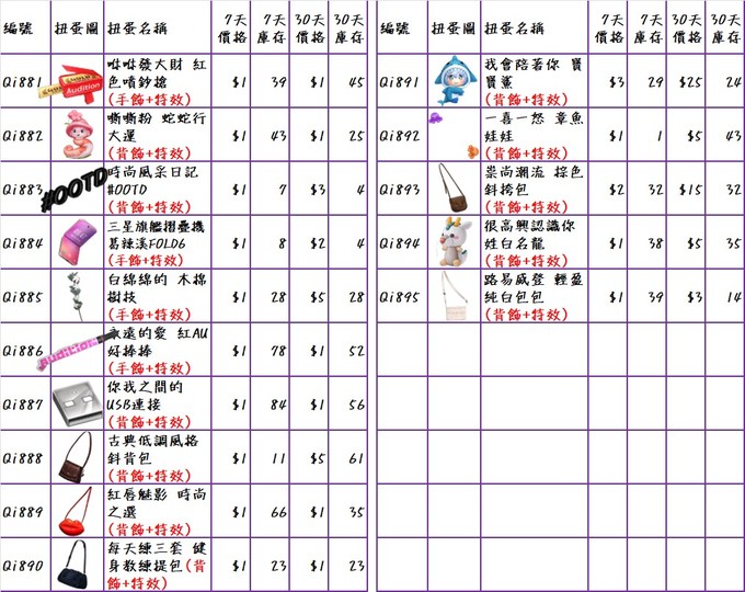 √其他商品連結(每月新扭蛋會更新):11/27(更)男女新扭蛋(每月更新)