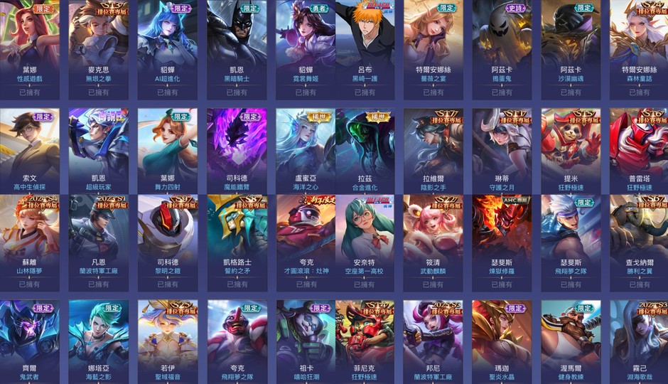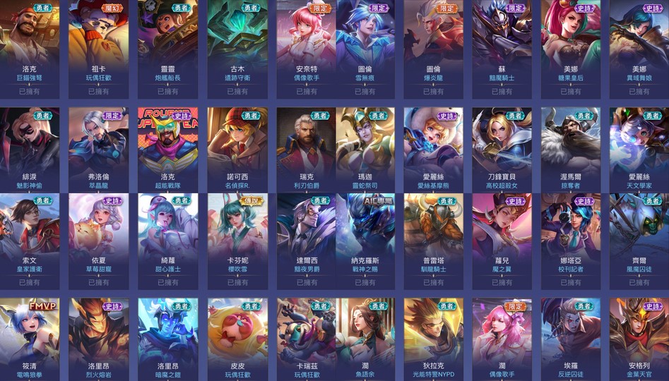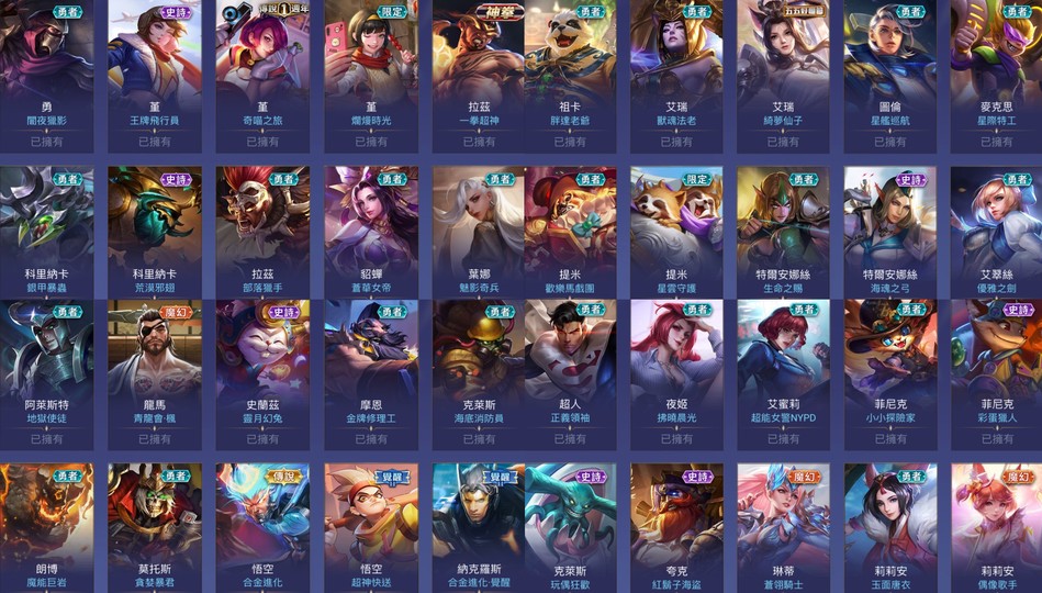 英雄119隻 造型214個 請看附圖