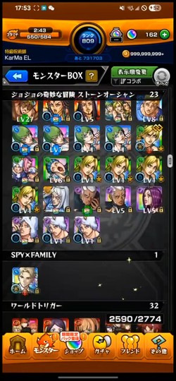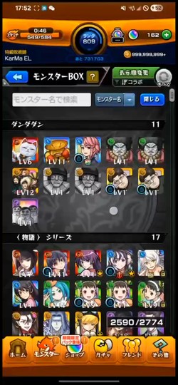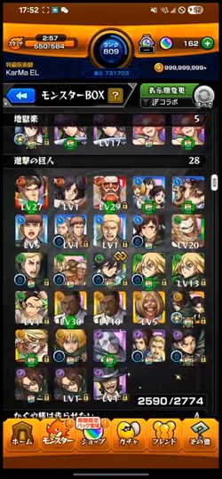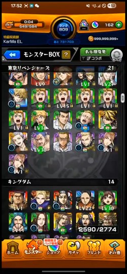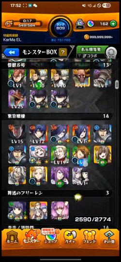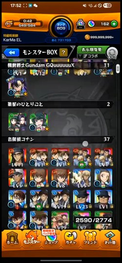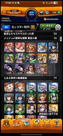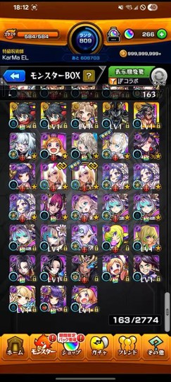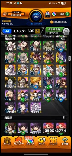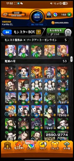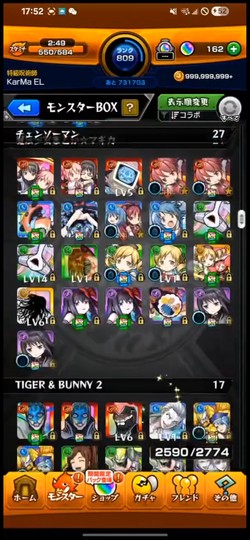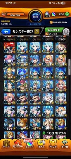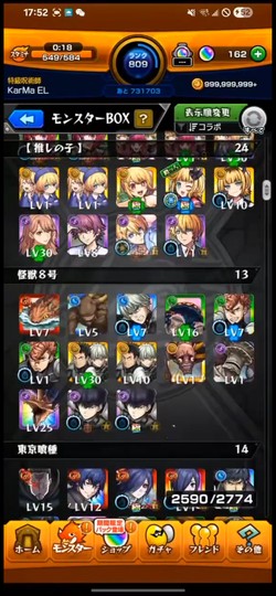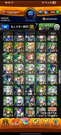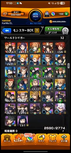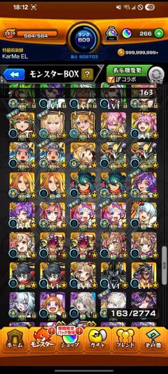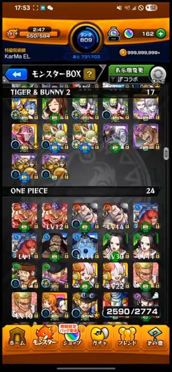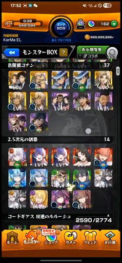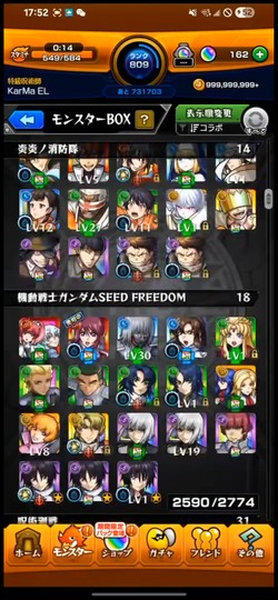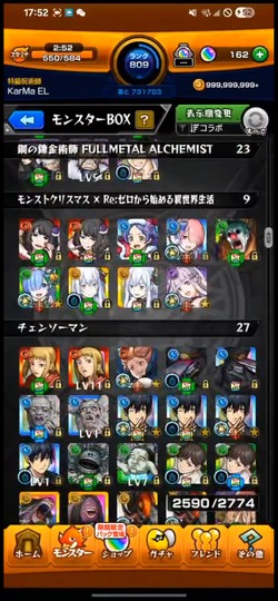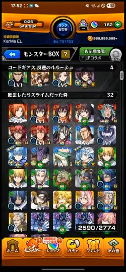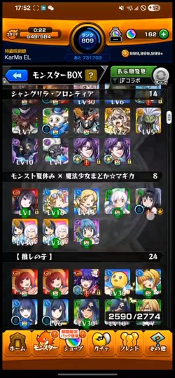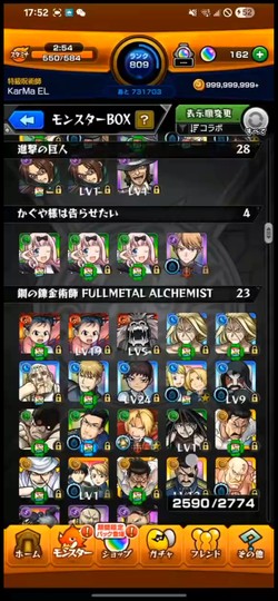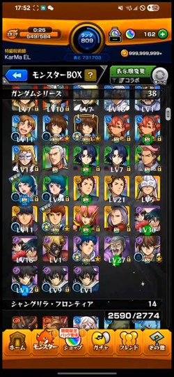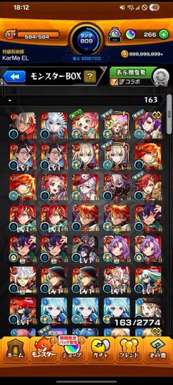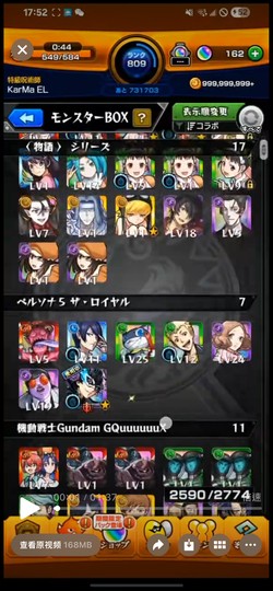 帳號等級高、轉蛋角色眾多,包含兩個合作限定角色齊全,極運角色多,擁有許多絕版角色。