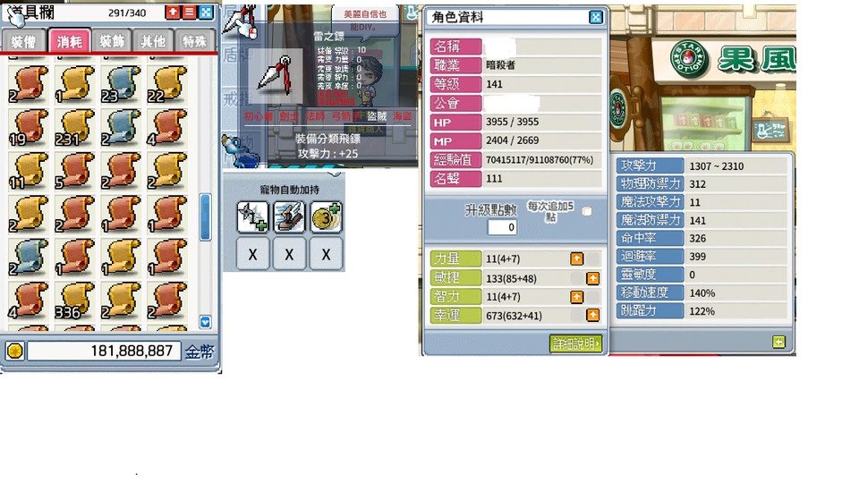 身上還有1.8e水錢 雪花323個 各式卷軸
