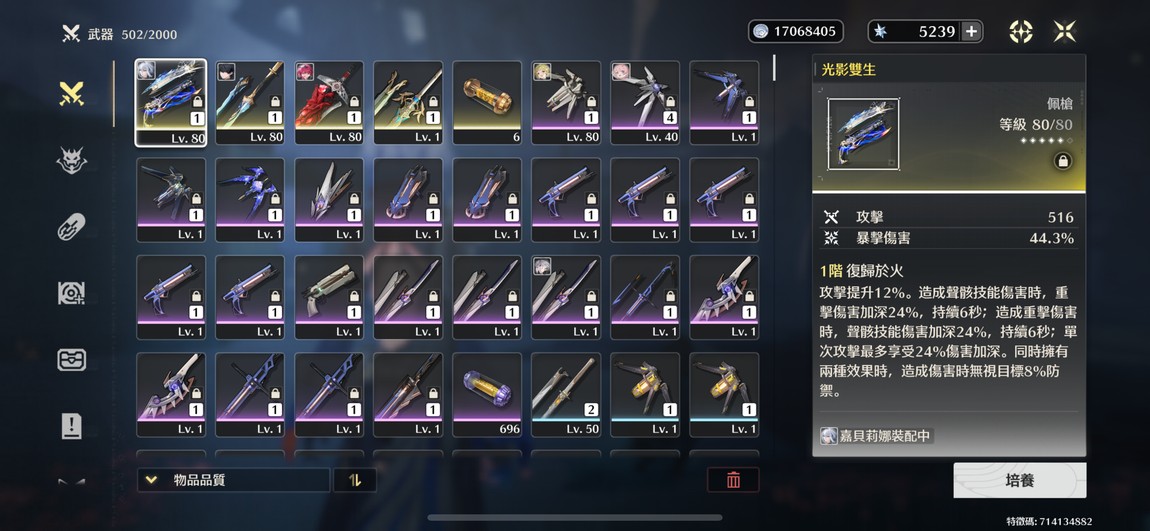 【49等、6金角、4金武】嘉貝2+1露帕0+1維里奈安可角色已抽55抽給信箱