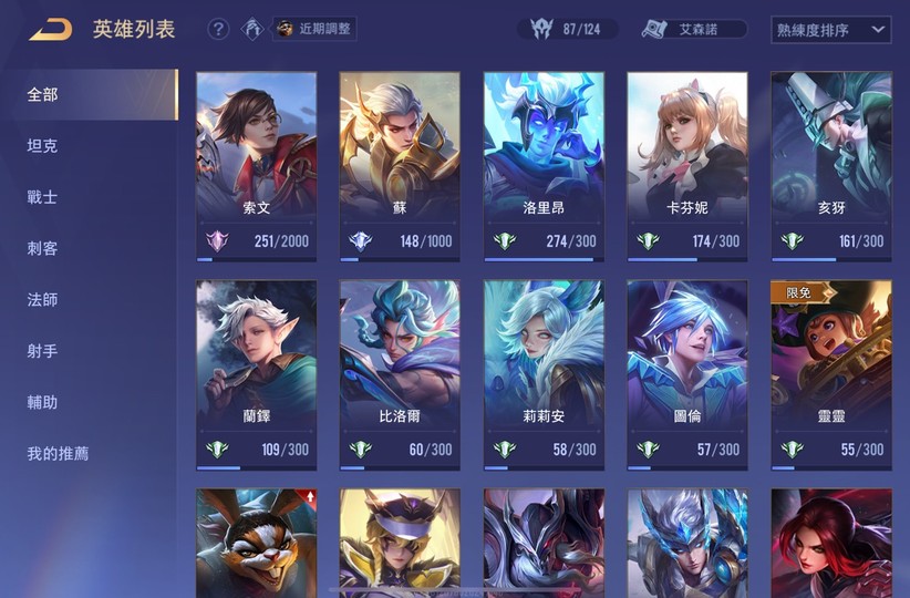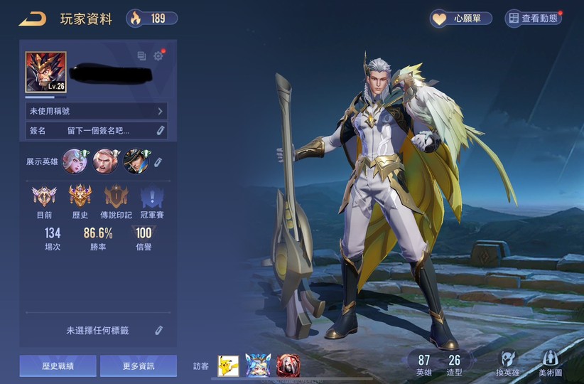 【G帳無綁無連、星耀、無VIP、87英、26造】金幣7萬 造型20選一*1 英雄20選一*1 改名卡*3