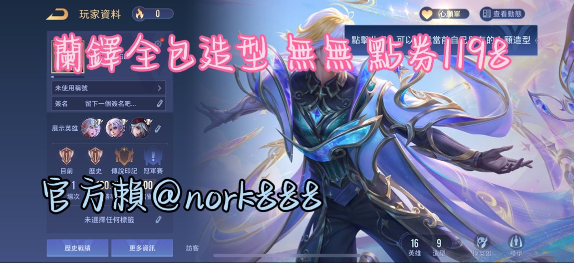 【金幣號】蘭鐸 新造型按鍵全包 內涵1198點 奧義碎片16萬 金幣剩下3000 有回歸