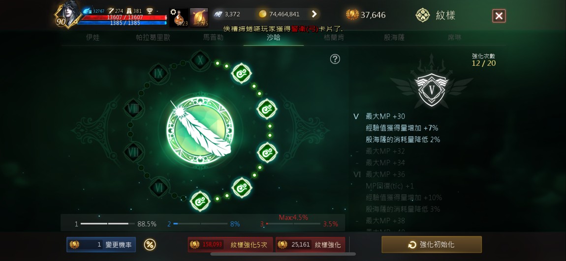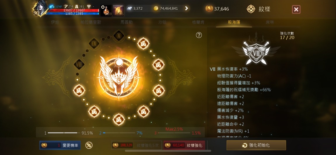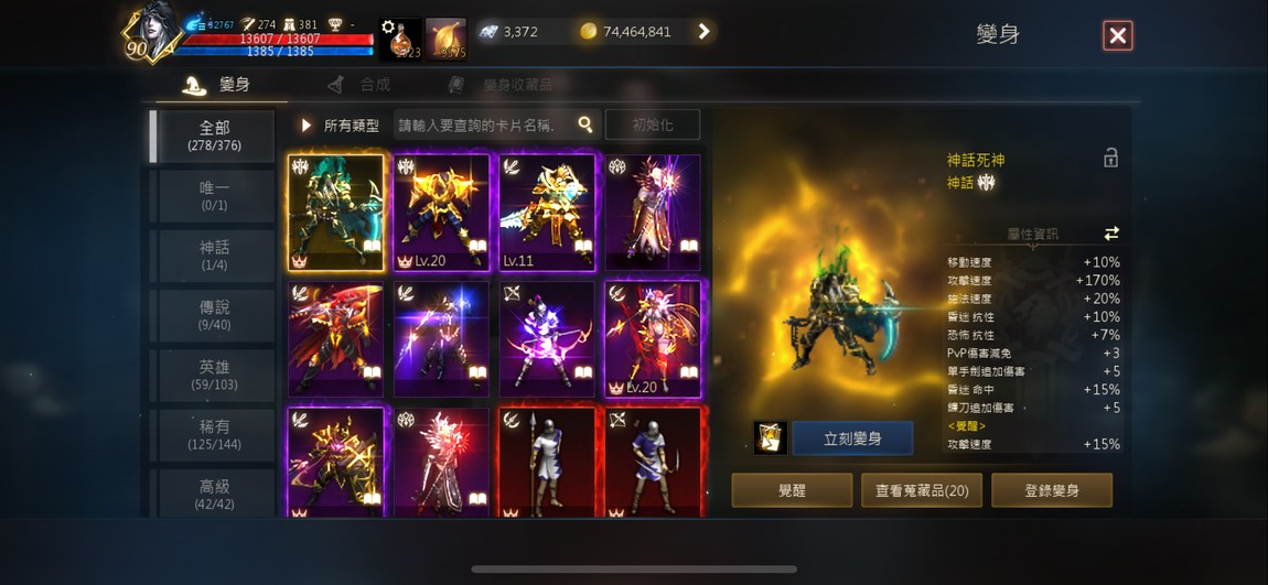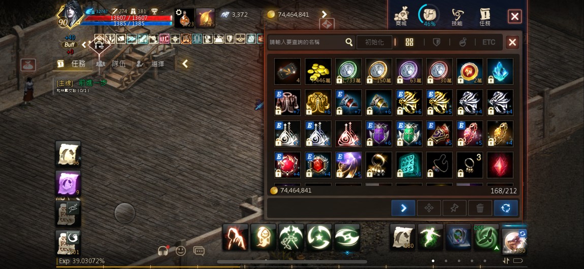 【死神、90等、八區】90.39死神,攻擊274,金變覺醒,1金技紋樣兩圈,名譽幣1700萬,8符石