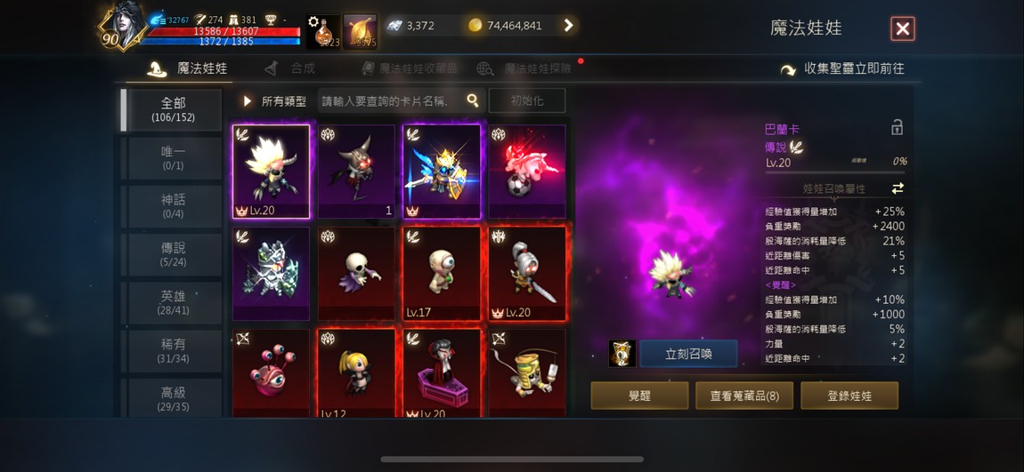 90.39死神,攻擊274(吃戰鬥卷),1金變(已覺醒),1金技,紋樣兩圈滿(火&土)名譽幣1700萬,+8力符石,持續成長,一區與八區各12隻80級小號分身流專濃馬戲團,ㄧ直濃一直爽,裝備如圖所附(附裝備,皆刻印),不含鑽。