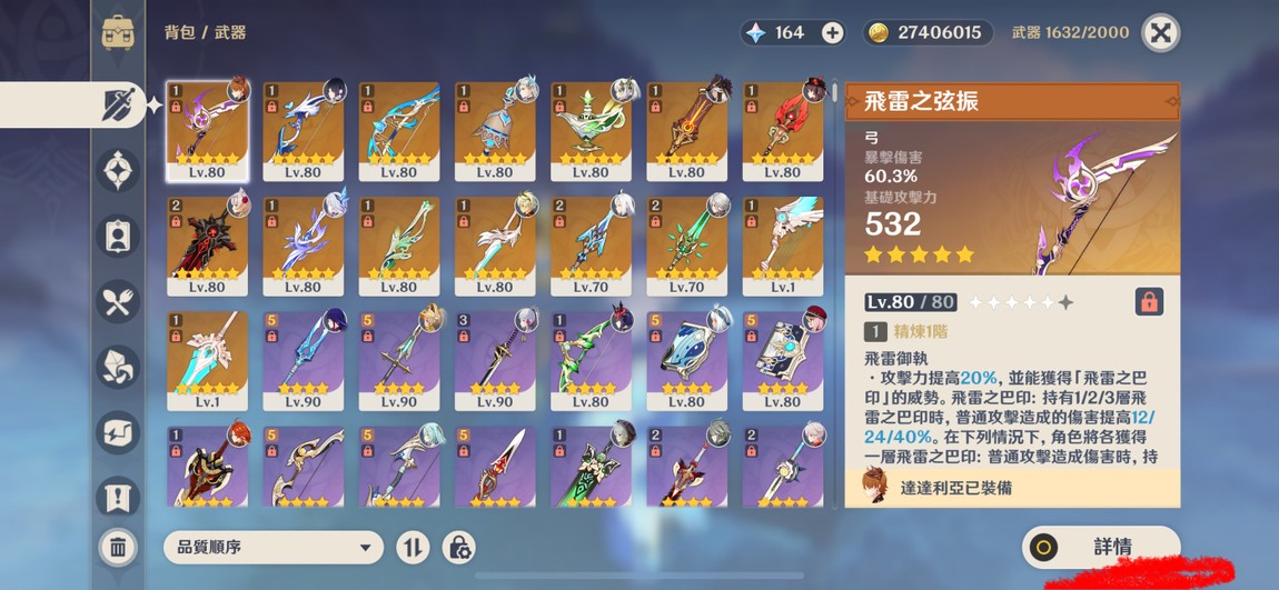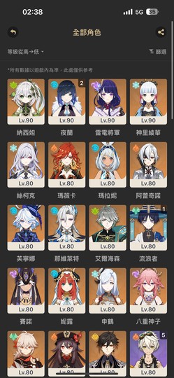 【女、59等、27金角、15金武】多五星帳號夜蘭2命連專
