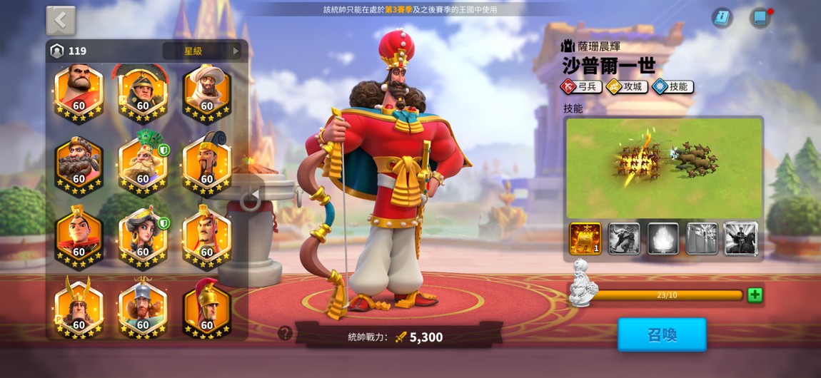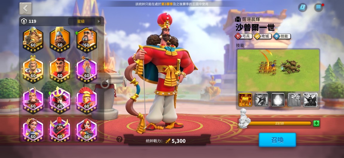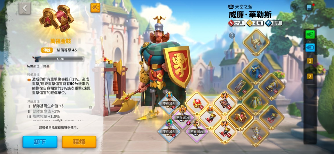 步兵覺醒:查理 軍坦 理查 亞力 關羽 列奧尼 哈拉爾 芝諾 巴加爾 埃提烏斯 大西皮 戈爾戈 劉徹 威廉 白起 朗納爾5551 德川4111 小西皮5211 塔里克5521