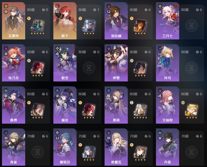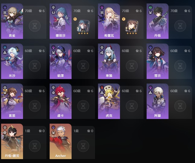 【男、70等、44金角、19金專】開服號多腳色多隊伍遐蝶長夜月緹寶風堇大黑塔Saber還有300抽up備戰昔漣
