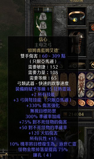 ●本丸●頂信心-主母之弓 15狂熱靈氣/2技/3弓/330ed 弓馬 亞馬