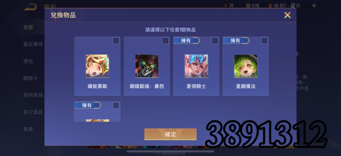 傳說對決活動代刷幣 (4500幣可兌換造型五選一卡) 150台幣=1000活動幣