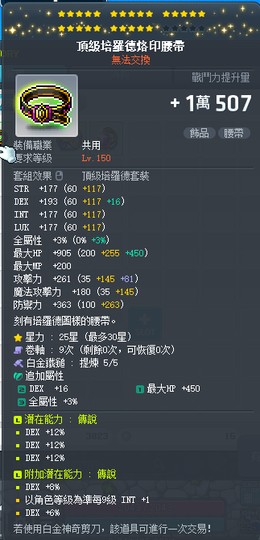 【頂級培羅德烙印腰帶】雙傳25星36%敏頂腰 附加86敏大雙 白5全b~