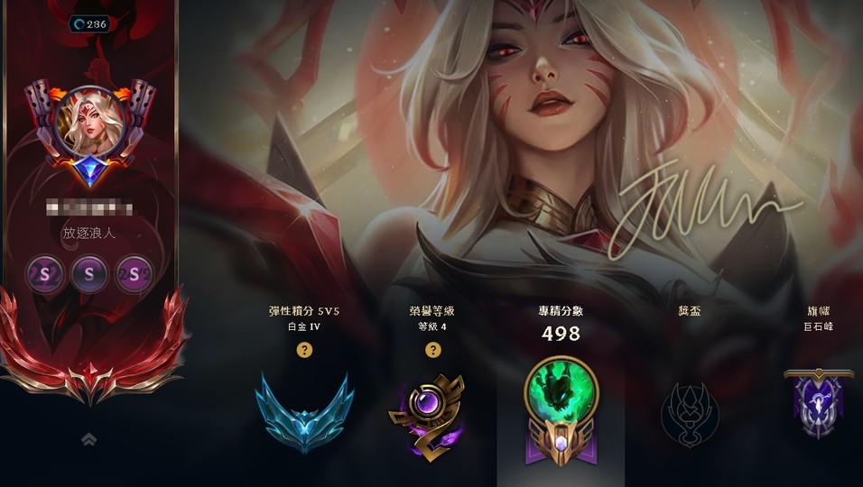 多賽季榮譽5,無不良紀錄,榮譽造型皆已全拿。