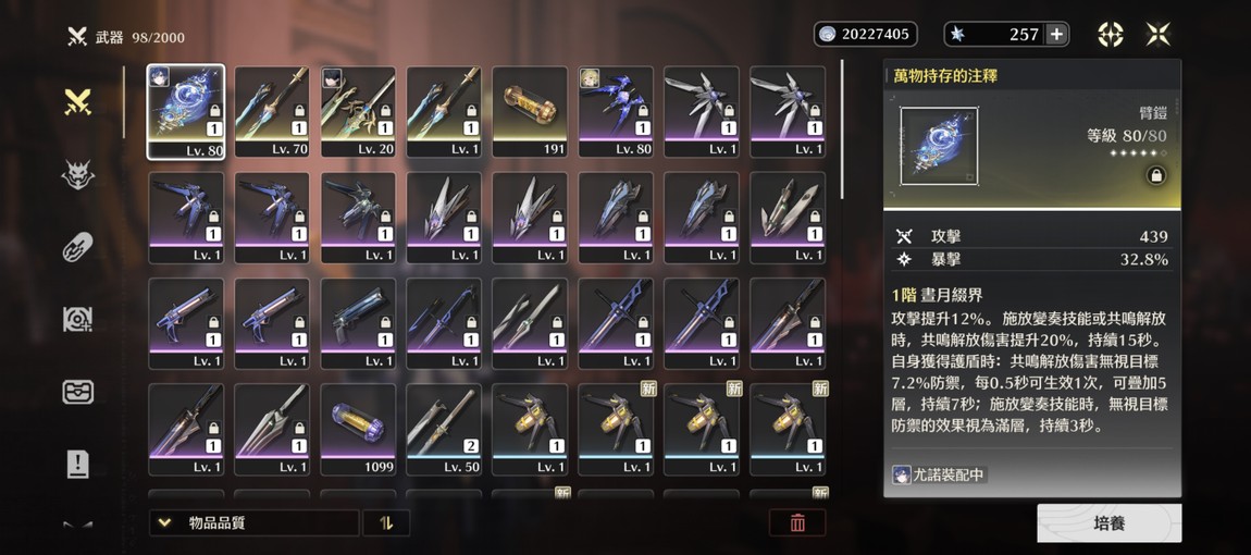 【52等、1金角、1金武】6+1尤諾,角色池墊40,武器墊20