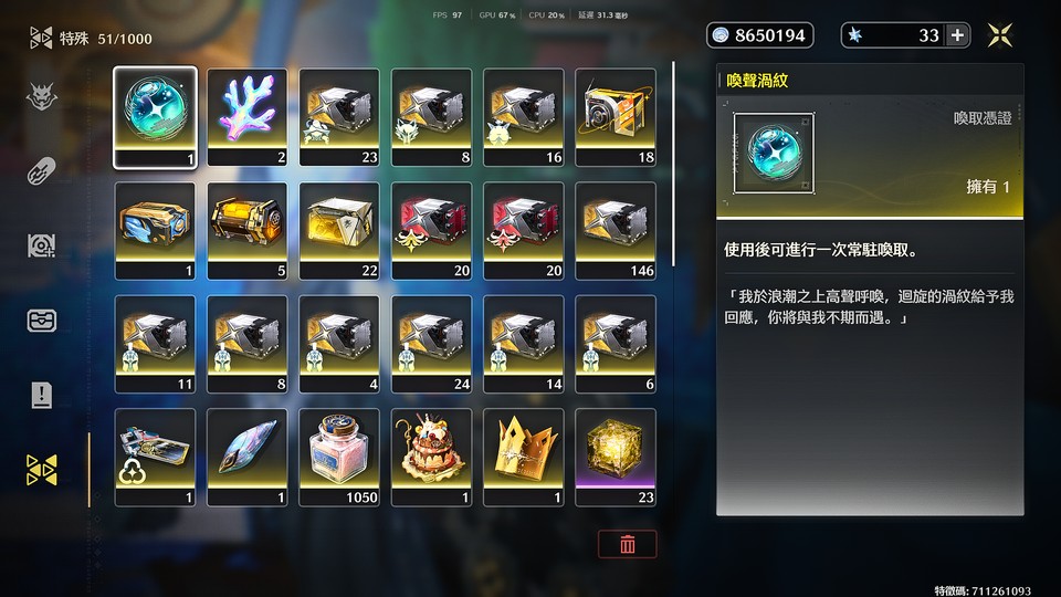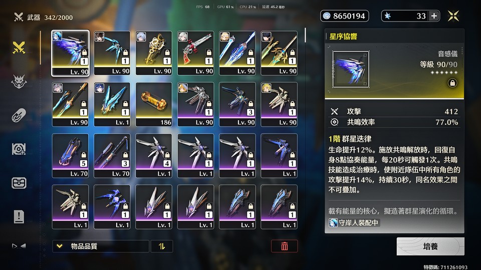 【77等、9金角、8金武】31卡提 10尤諾 01贊尼 00菲比 01柯萊塔 00折枝 01守岸人