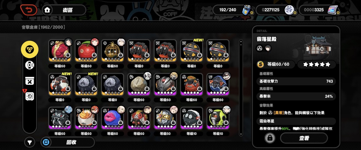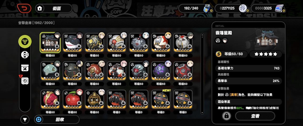 武器:S 級音擎齊全且大部分滿等,裝備配置完整。
