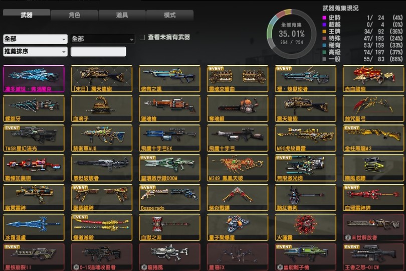 【1史詩武器、1王牌武器、1王牌角色】史詩蛇神狗神 迷麥白金 妖村血殛颶風泰坦靈魂聖弓量子 多王牌超凡角色 多塗色槍~