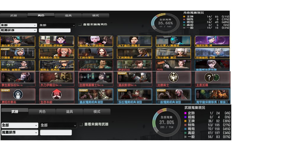 【1史詩武器、36王牌武器、14王牌角色】適合小資玩家的打殭屍帳號