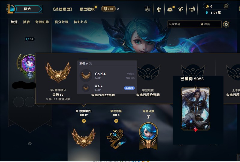 【32等、黃金、69英雄、1造型】單雙金4 超過80%勝率 高隱分手打帳號