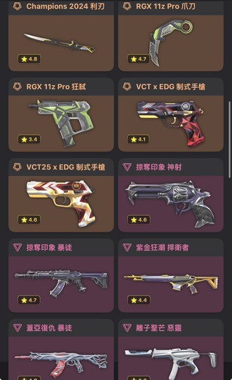 【銀牌、14槍、6刀】24冠軍套 電玩OP VCT爪刀 43等 peak白金2 現銀1 馬帳 可砍