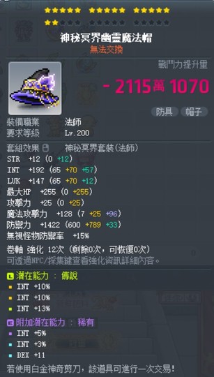 【滅龍騎士盔甲 神秘冥界魔法帽】22C 36%智 X卷滅龍_17C 33% V卷神秘帽