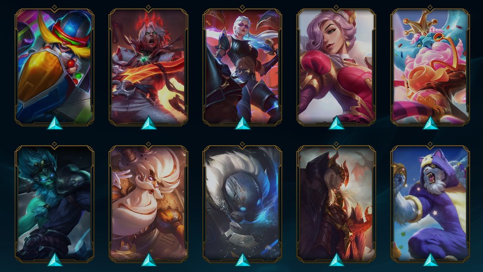冠軍造型:TPA全、SKT 劫、枷蘿、賈克斯、亞歷斯坦、雷茲、燼、札克、阿祈爾、雷茲、DRX鏡爪、SSW圖奇、新吉德SSG剎雅、瑞空、吶兒、DWG奈德利、FPX剛普朗克、墨菲特、IG勒布朗、卡蜜兒