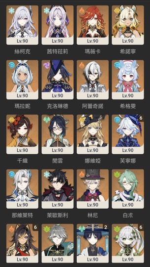 夜蘭6+5 胡桃6+5 優菈6+5 宵宮6+3 甘雨6+2 納西妲6+2 神里綾華6+1 芙寧娜6+1