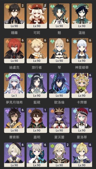 鍾離2+1 散兵2+1 可莉2+4