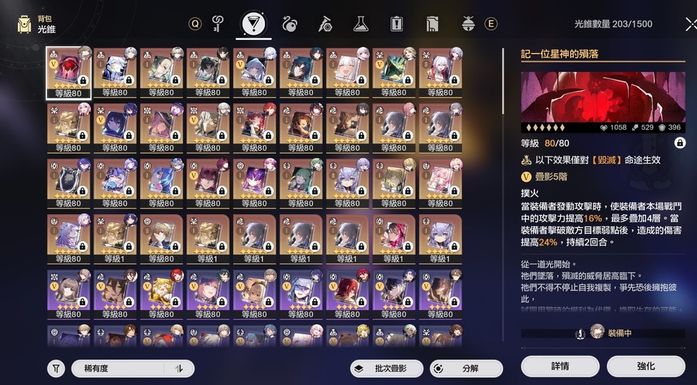 未熄的餘燼有24085 可兌換各種升級材料