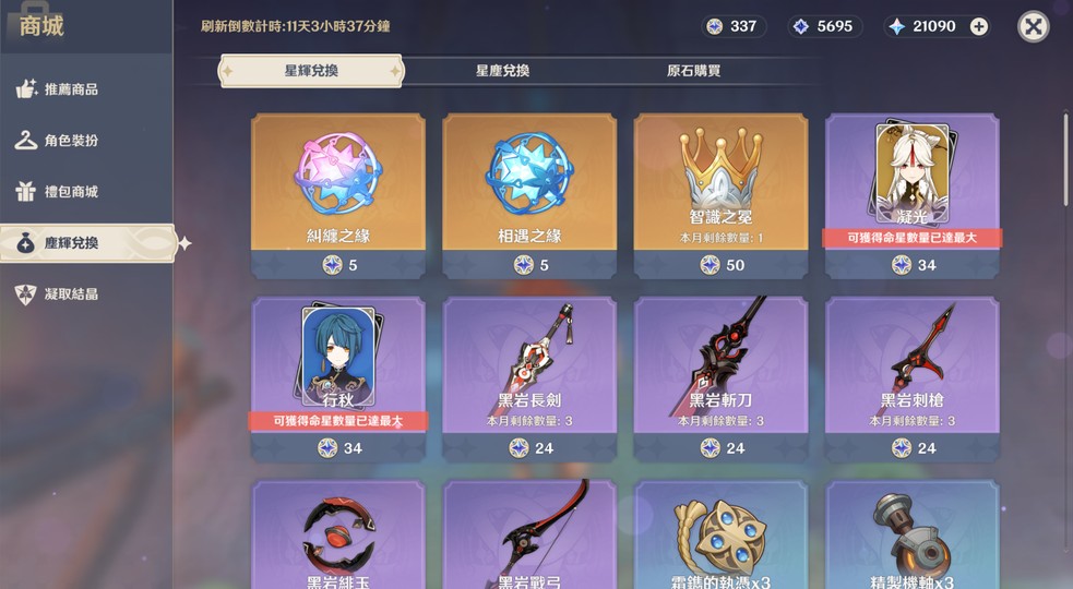 星輝還有337,可自行兌換成67個糾纏之緣