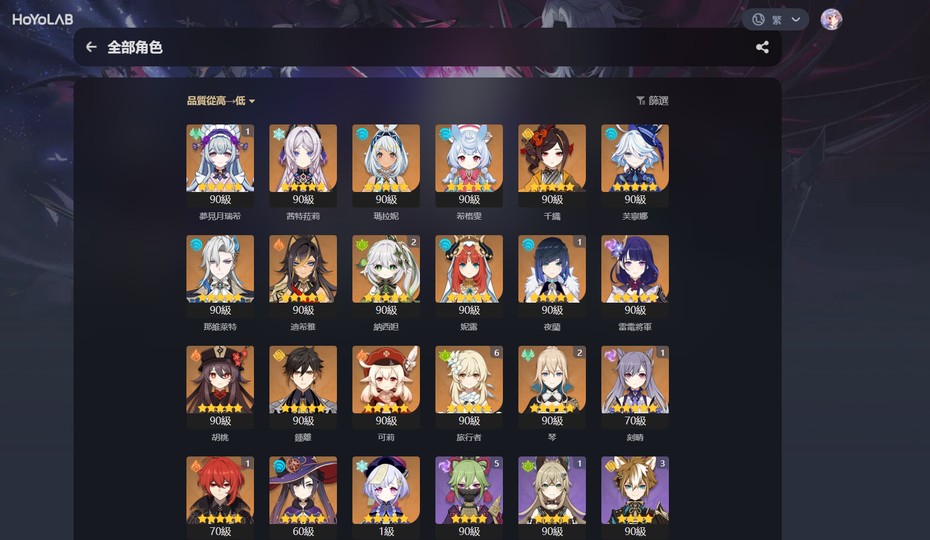 【女、70等、27金角、11金專】霞蝶,提寶,知更鳥,阮梅,星期日 綁原神絕區