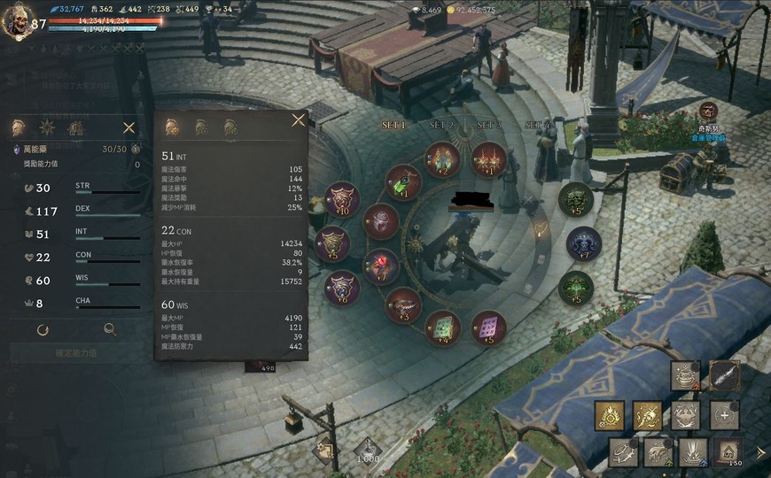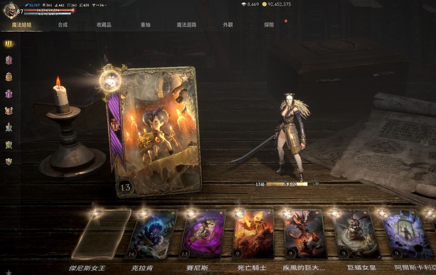 關鍵裝備: 包含 +8刻印紫武 和 +7 戒指 等完整裝備