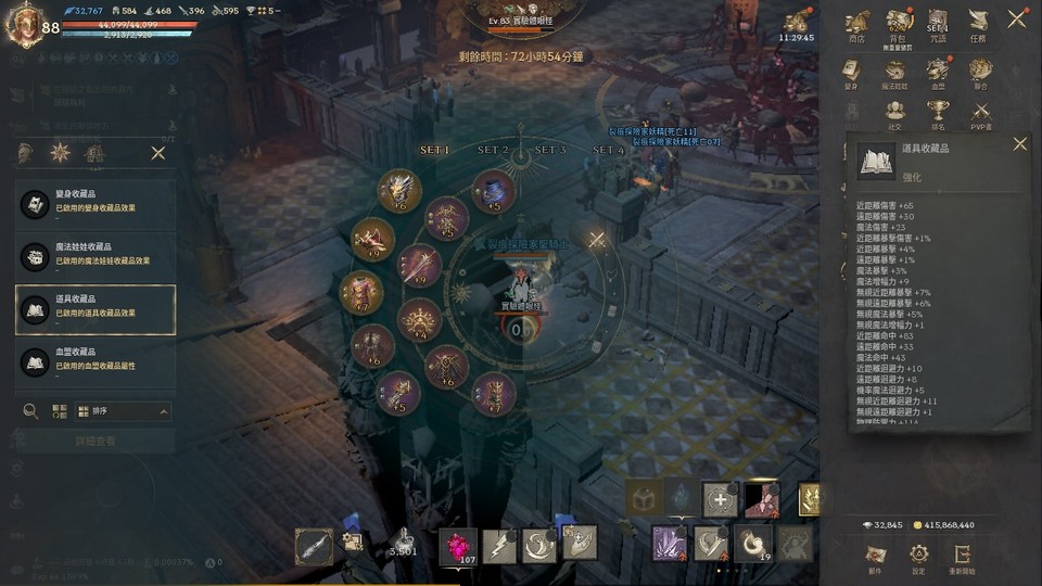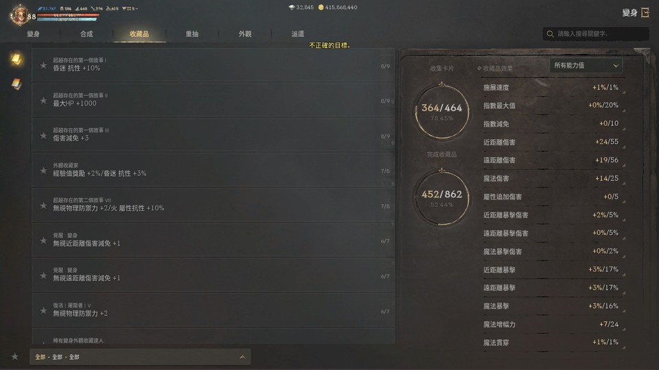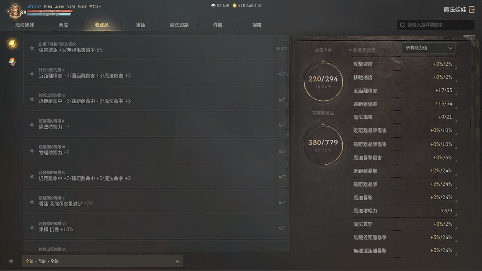總收藏:43.69% (近傷:65 / 近命83 / STR 23 / 物防104 /近迴10 )活動首領徽章只做防+2累積中