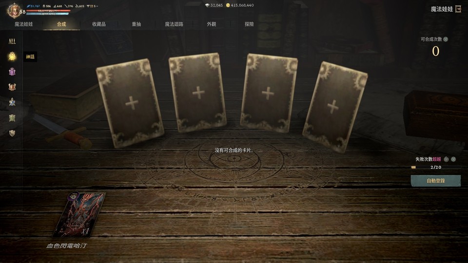 提煉術:濃湯3 / 戰鬥捲4 其餘五 , 活動類只做秘笈其餘沒做