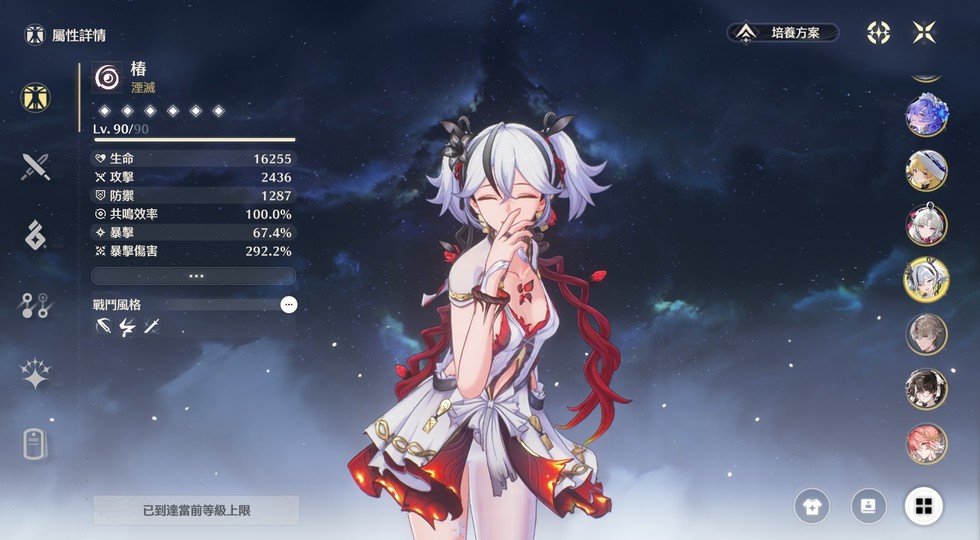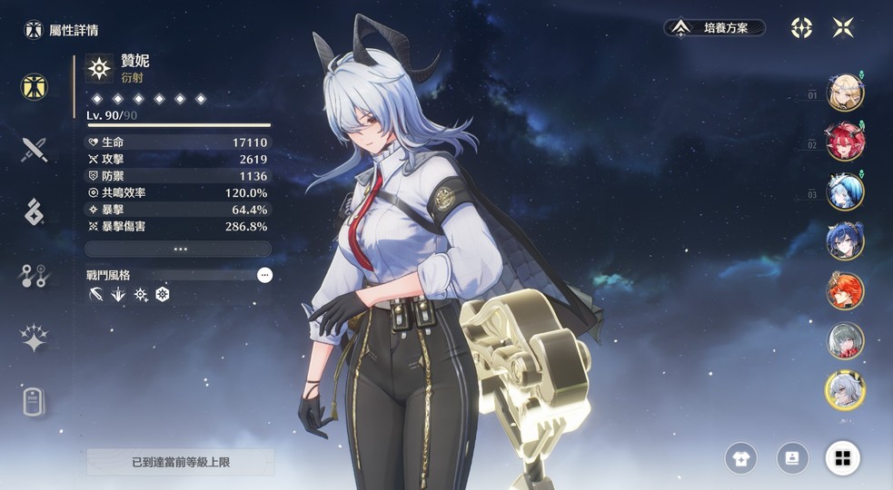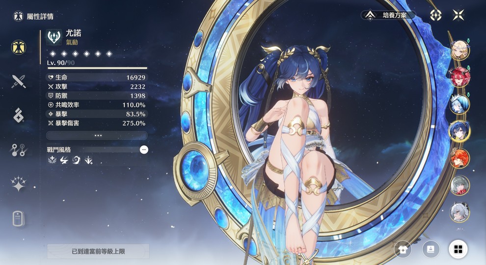 主要角色都已配完裝備,技能除了變奏外幾乎全LV10