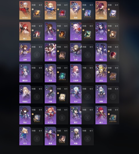 【女、70等、48金角、30金專】H7_白厄0+2遐蝶0+1流螢2+1星期日1+1長夜月風菫緹寶刻律德菈那刻夏阮梅