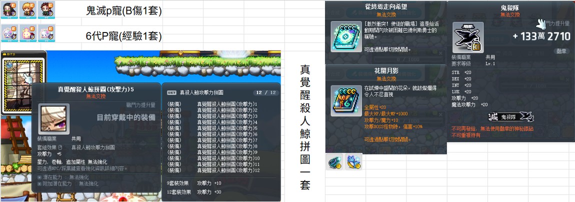 【290等、精靈遊俠、9623戰地、700AUT】T5星火創世、真覺殺人鯨拼圖、兩套P、59米、25C控制核心、創世胸章、多頭多臉