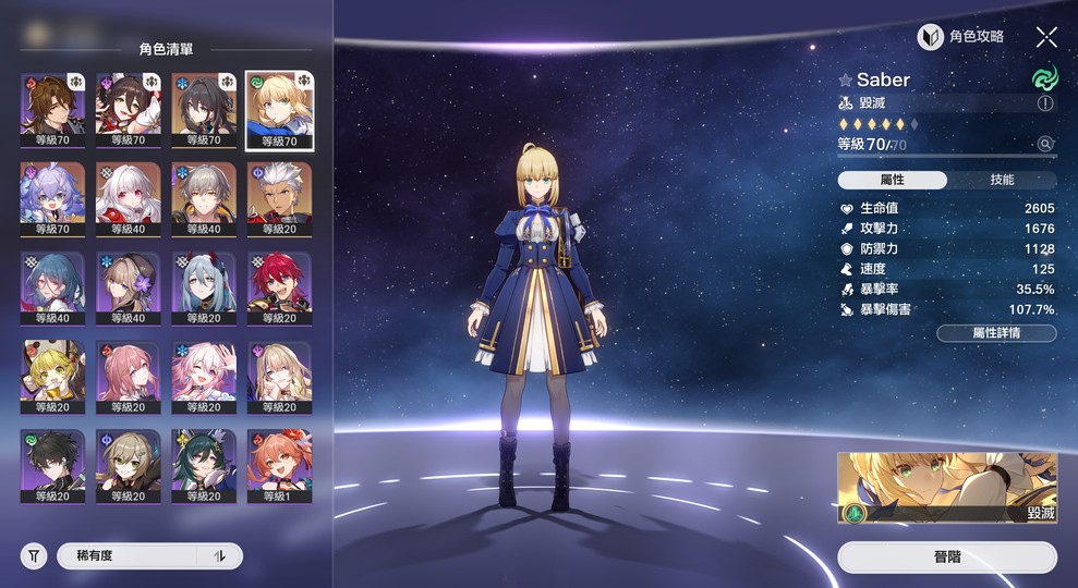 【男、60等、5金角、1金專】saber01,大量星瓊,大量劇情可肝