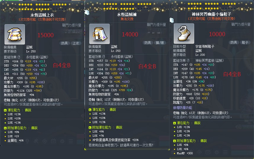 【25星永恆】25星 36%幸永恆盜賊上衣 永恆盜賊褲 39%神秘小偷鞋