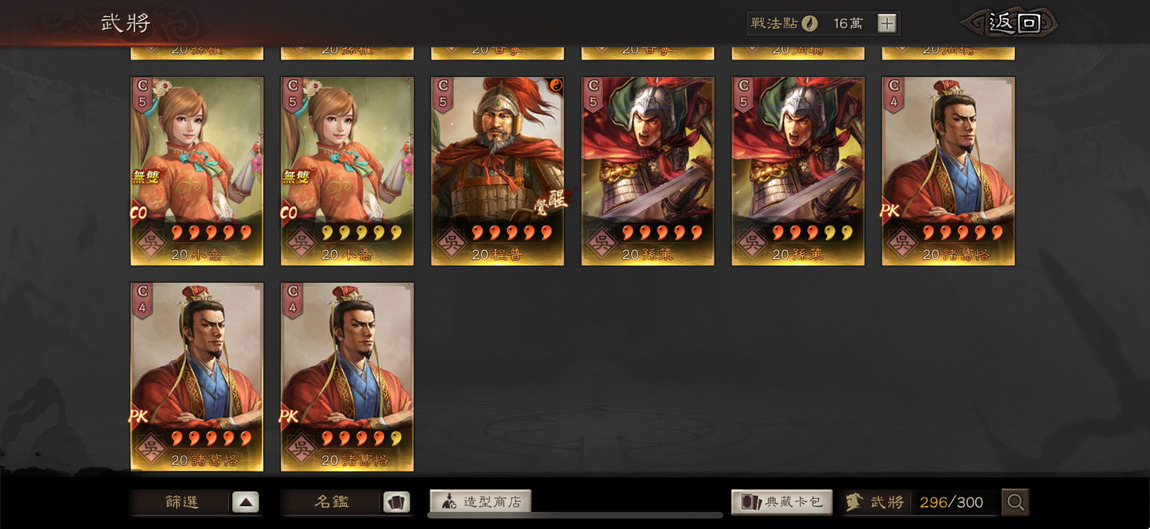 武聖 x2,雄烈 x1,號令 x1,昭烈 x1