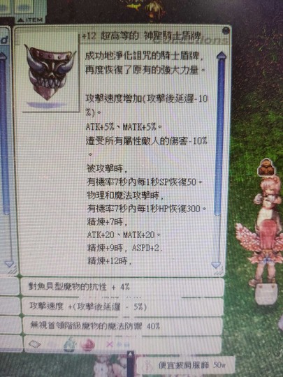 +12神聖騎士盾牌(高級蠕蟲)無視首領魔法防禦40%