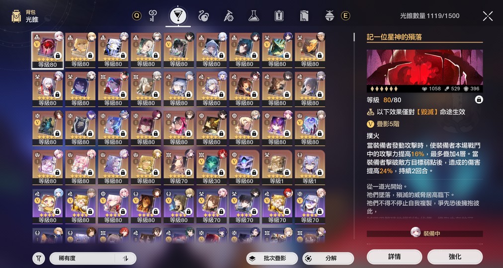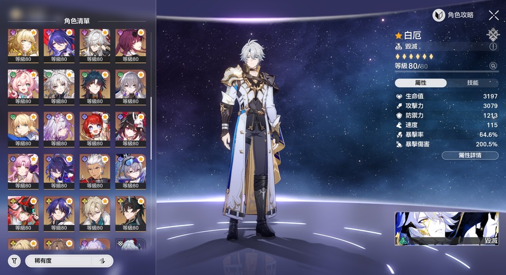 【女、70等、43金角、32金專】崩鐵退坑號 霞蝶長夜月2+1等43隻5星 古老夢華+星瓊共10000多