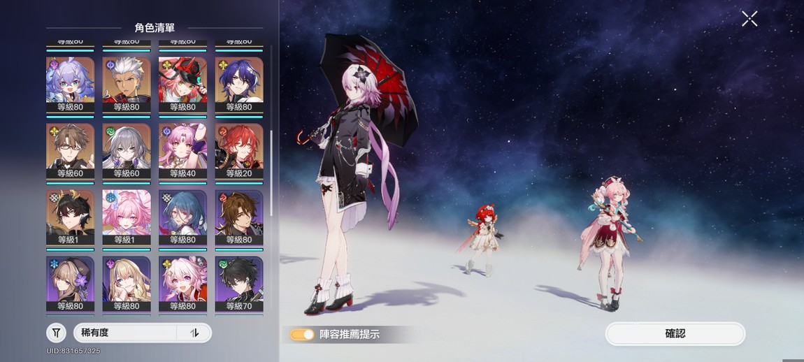 【女、70等、35金角、16金專】雙未設 2+1遐蝶 黃泉 多角色1+1 完整記憶隊 新增 長夜月 昔漣