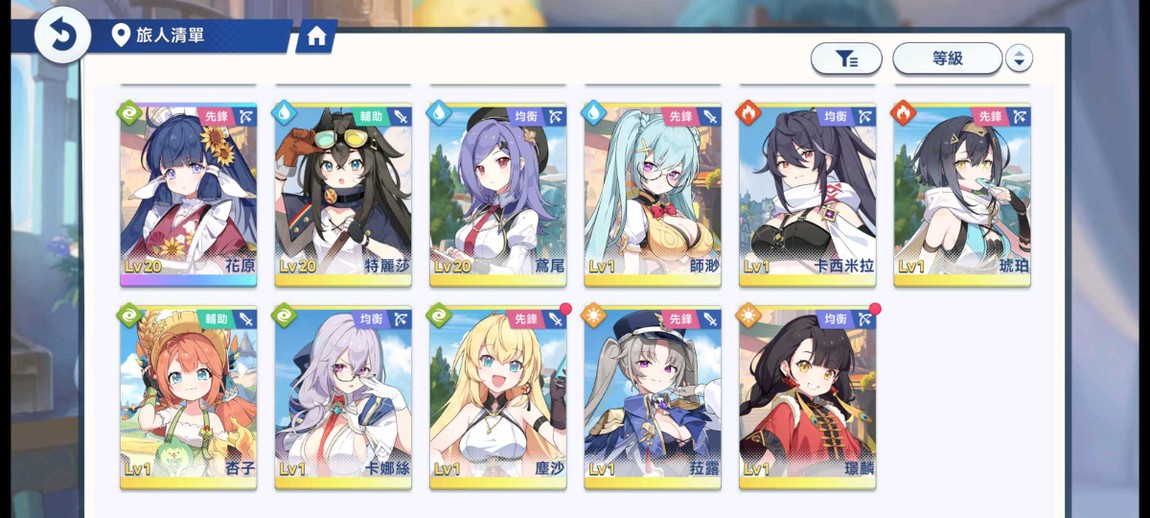 四星角色中特別好用的土隊嶺川跟水隊特麗莎已開啟第一個天賦(突一),