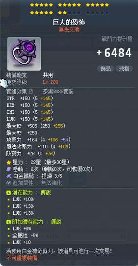 【巨大的恐怖】雙傳22星36%幸巨大的恐怖 附加85+18幸 白3全b~