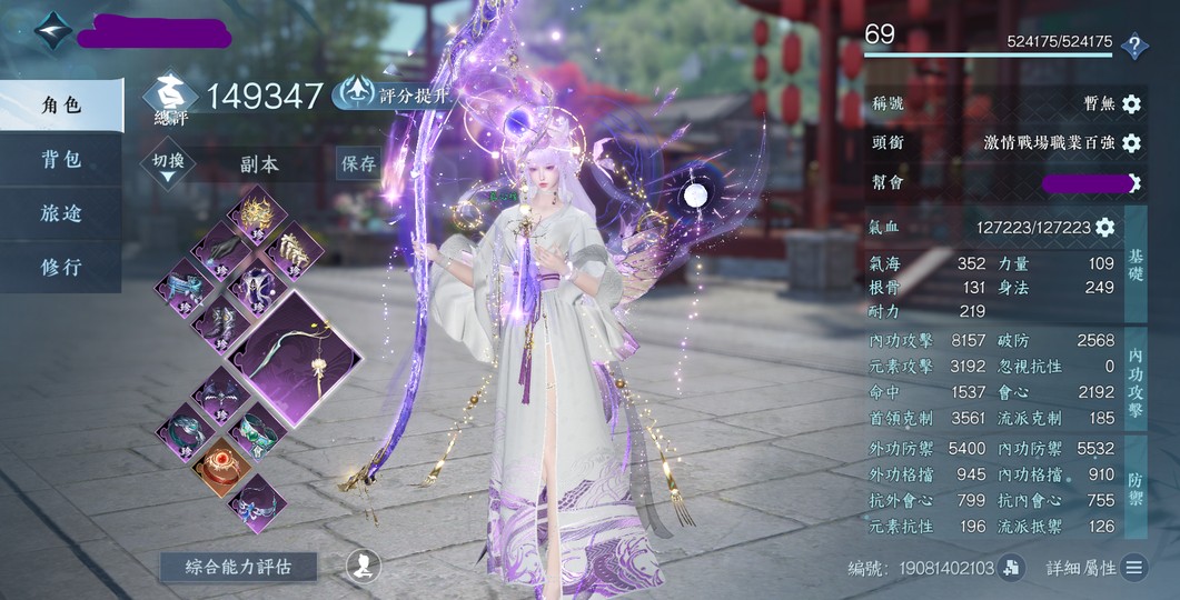 中練度,戰力14萬素問,萬劍、藥罐子抽滿了,綁玉1.8w左右,