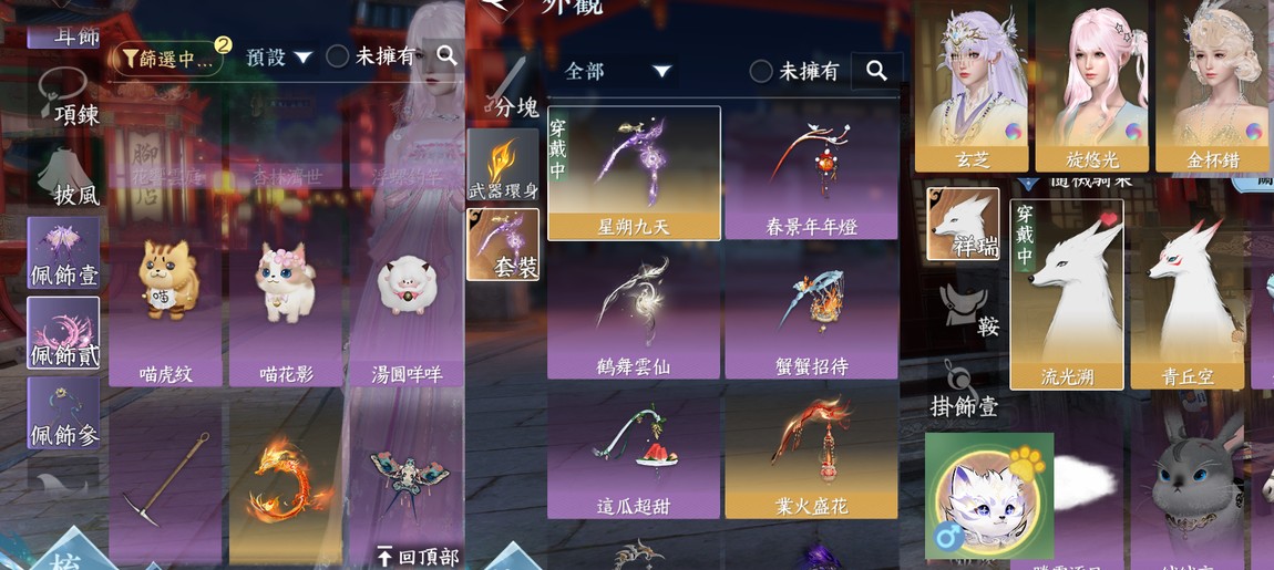 項鍊:靈犀三線增益、環靈破瘴、如夢令增益、長風散破增益、怒劍吟風