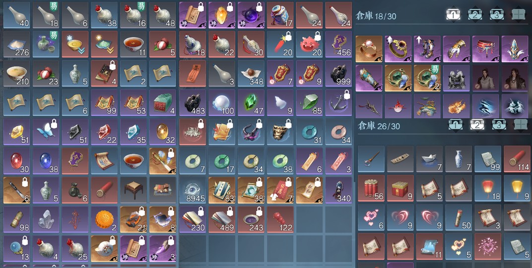 尋俠帖200多本,有三四套衣服,銅幣120w左右。