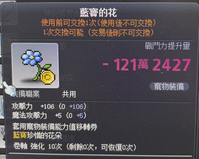 【夜晚的艾羅迪、魂萌獸、藍寶的花一般寵裝】夜晚的艾羅迪髮型複製品500 魂萌獸 白卡2000 106攻一般寵裝1200