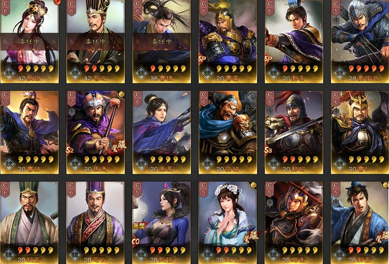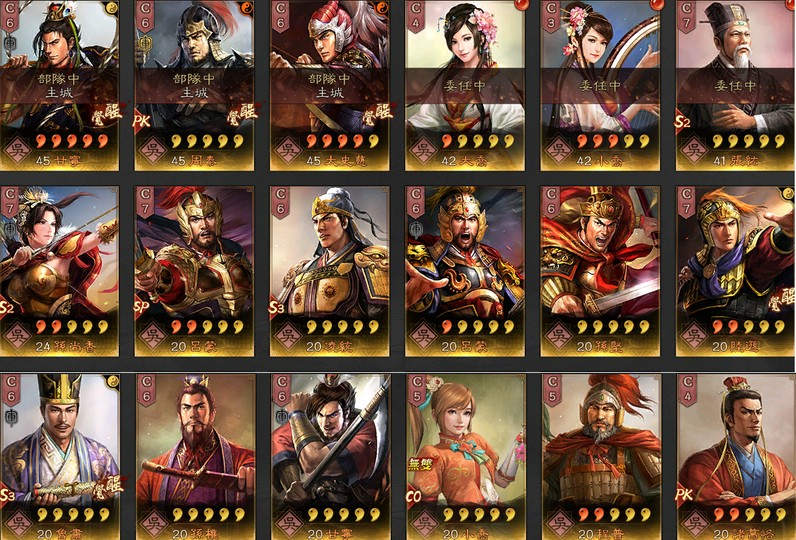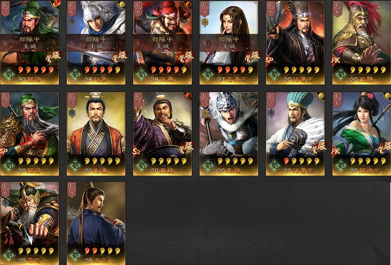 典藏 :甘寧/黃月英/董卓/孫尚香/SP呂蒙/孟獲/曹真/SP郭嘉/SP諸葛亮/嚴顏/凌統/呂蒙/孫堅/貂蟬/呂玲綺